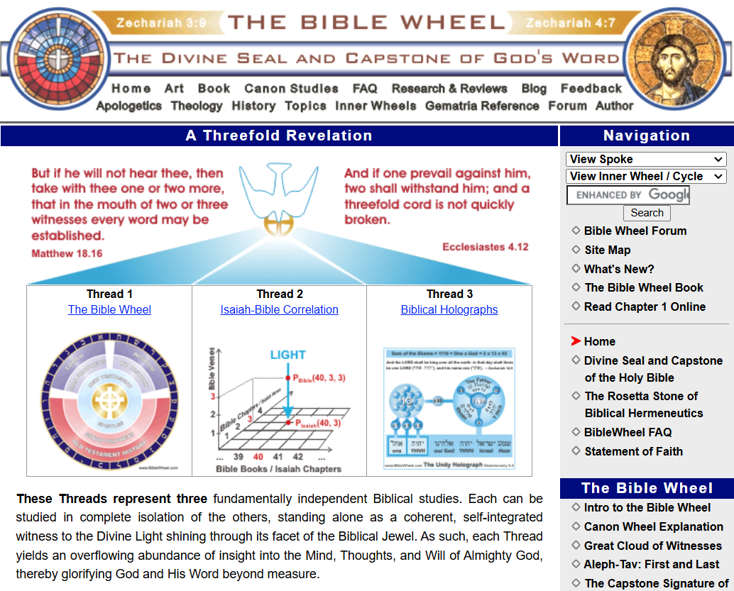 I remember coming across the Bible Wheel website many, many years ago. As I've just started a more serious study of the numerical structure of scripture, I decided to go back to it and was delighted to see that there is actually a book!